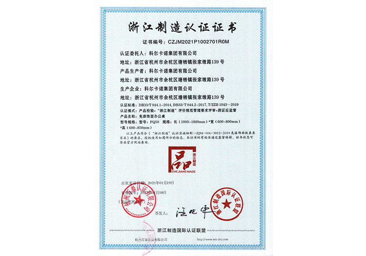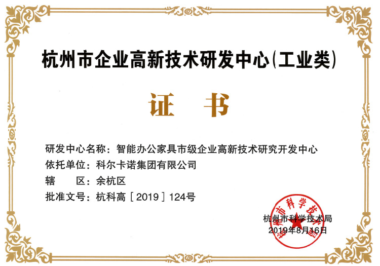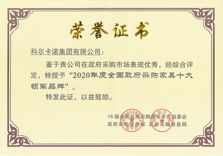 科尔卡诺经过多年努力,获得了全国政府采购家具十大品牌、家具行业杰出企业、高新技术企业等多项荣誉