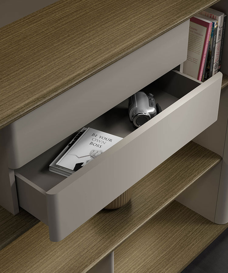 按弹式抽屉,让简约无处不在。Push-button drawers to make simplicity everywhere.