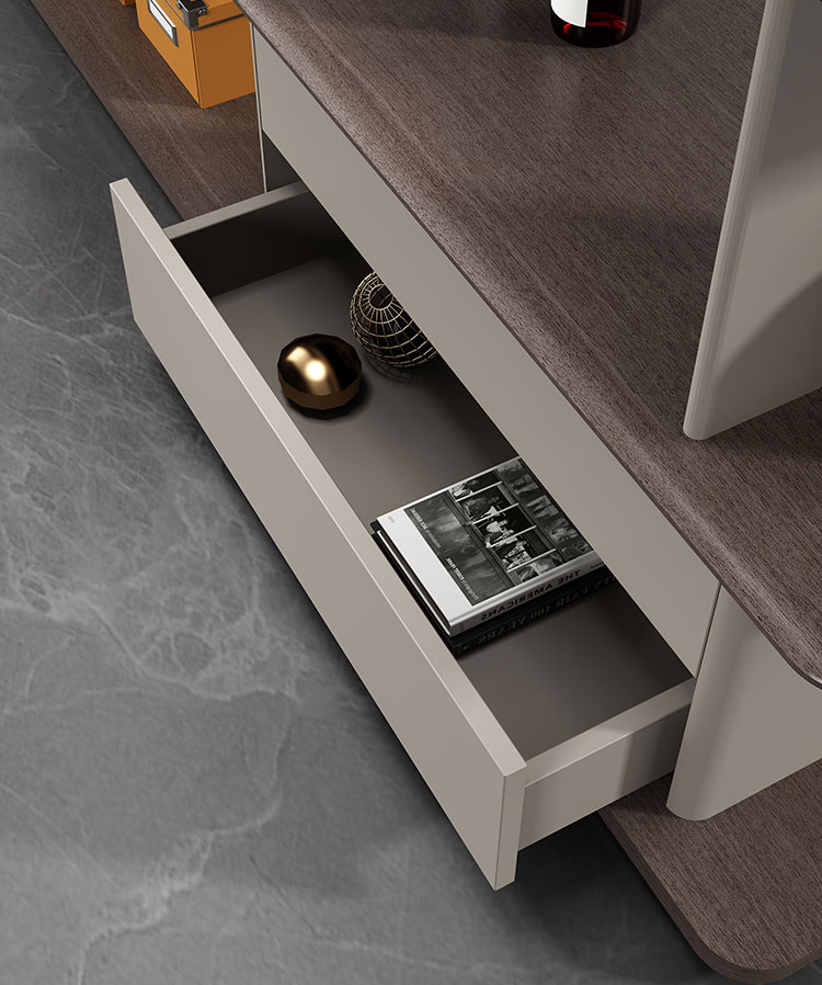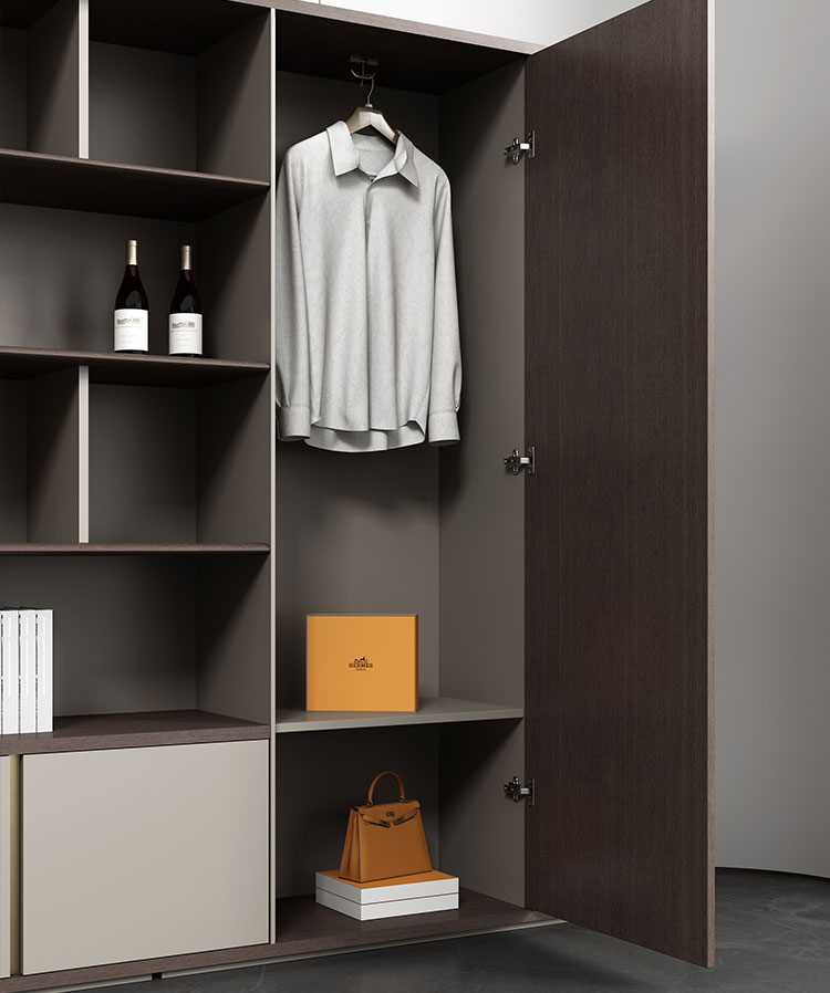 隐藏式型材拉手让功能趋于简约。合理功能布局让储物更加有序。Hidden handle makes the function tend to be simple.Reasonable functional layout allows for more organized storage.