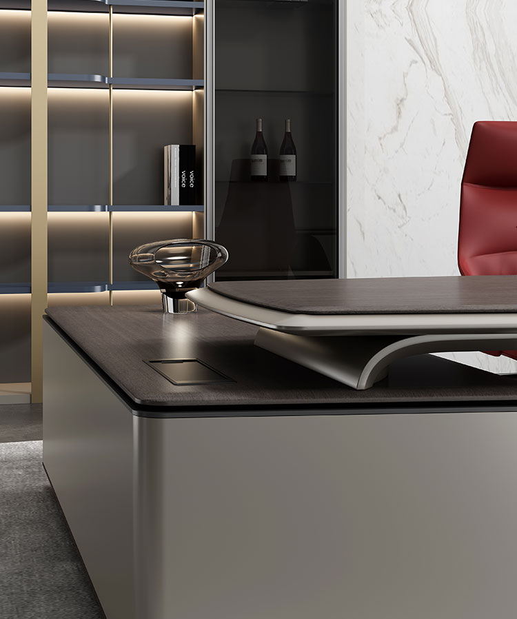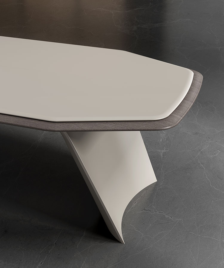 玻璃钢大曲度支撑脚极具视觉美感与张力,双层台面设计尽显奢华。Large curvature support leg with fiber reinforced plastic is very visual beauty and tension, double-layer desktop design to show the luxury.