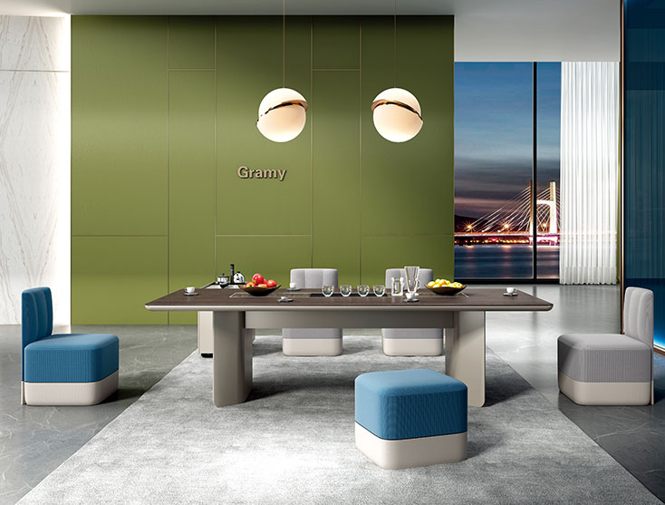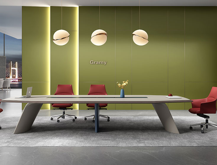会议桌:2800*1200*760 / 3400*1300*760 / 3800*1300*760 / 2400*1100*760 - 颜色 CY08黑胡桃木油漆 / CY13流星灰油漆 / CY16深卡其油漆 / CF58-WM华霖蓝微麻