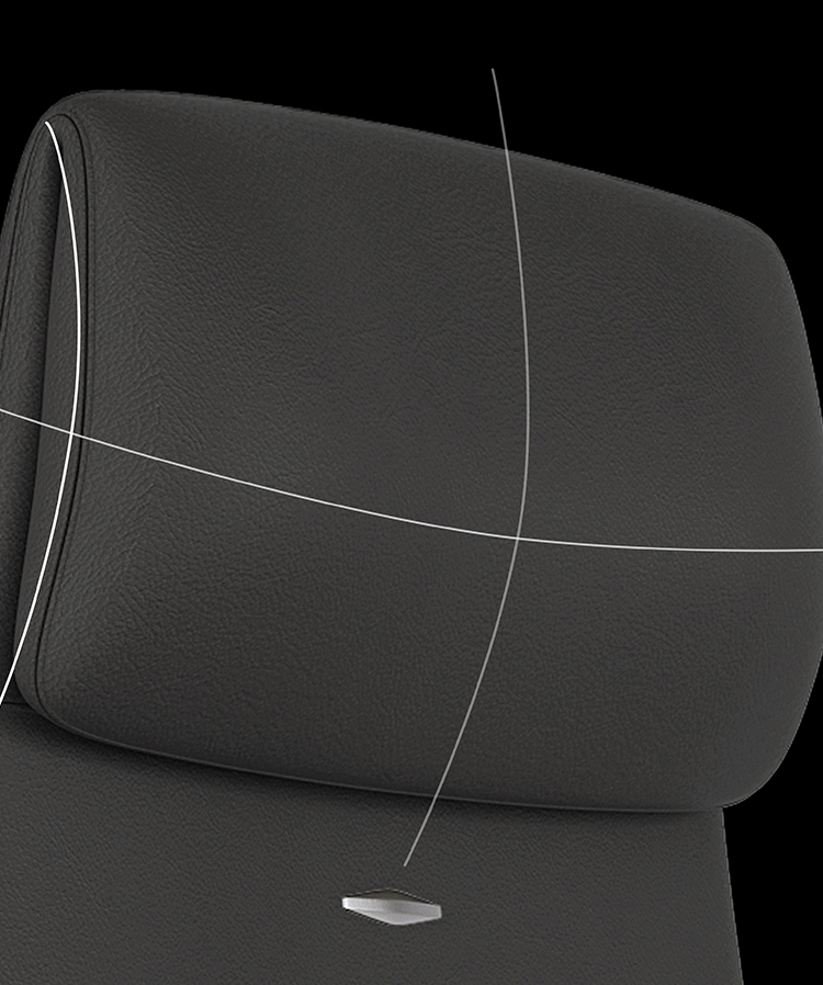 宽大头枕,舒适坐感。Wide headrest, comfortable sitting feeling.