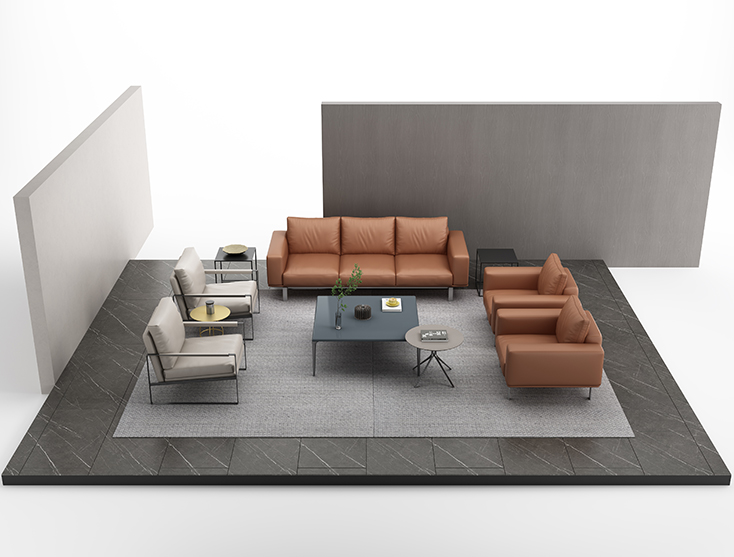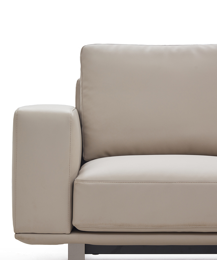 立体几何的优雅:横平竖直之间勾勒德绅沙发的整体形态,用巧妙的正交线完美平衡比例,彰显出简约大气、舒适优雅的气质。Between the horizontal and vertical outline the overall shape of the Deschen sofa, and use clever orthogonal lines to perfectly balance the proportion, highlighting the simple, comfortable and elegant temperament.