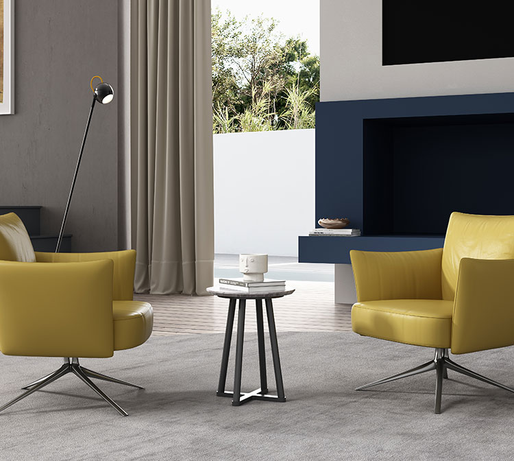 材质碰撞 传达个性:皮质与金属下脚的搭配,兼顾美观与实用性。The combination of leather and metal leg is both beautiful and practical.