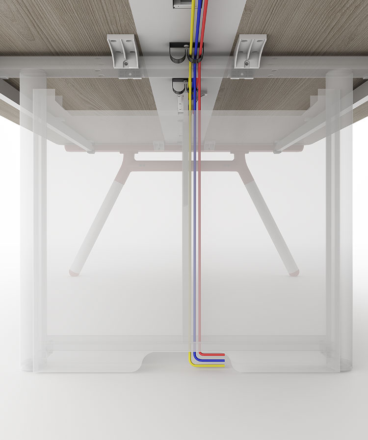 桌下走线简洁清爽,一览无余。The under-table wiring is clean and crisp and in full view.