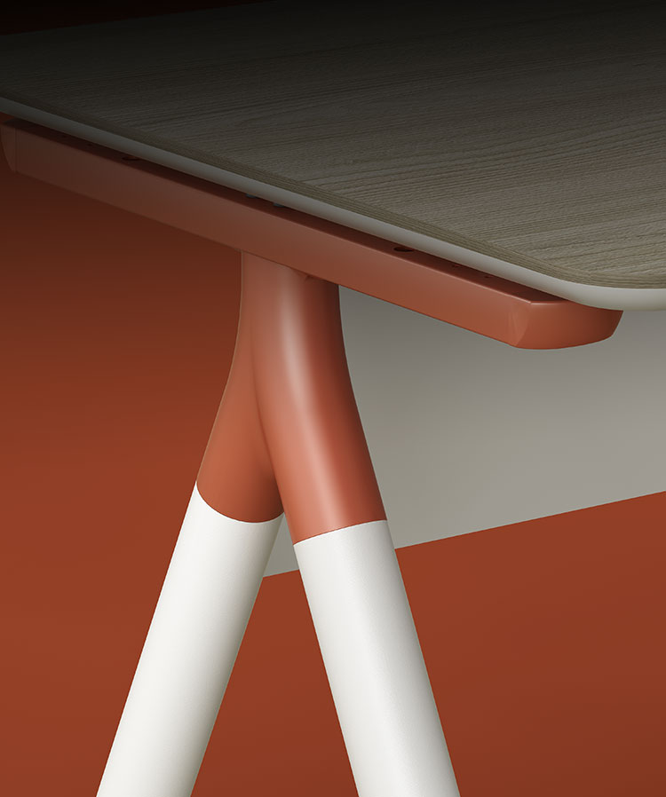 桌脚圆管分色设计,引人夺目。The round pipe of the table leg color separation design attracts the eye.