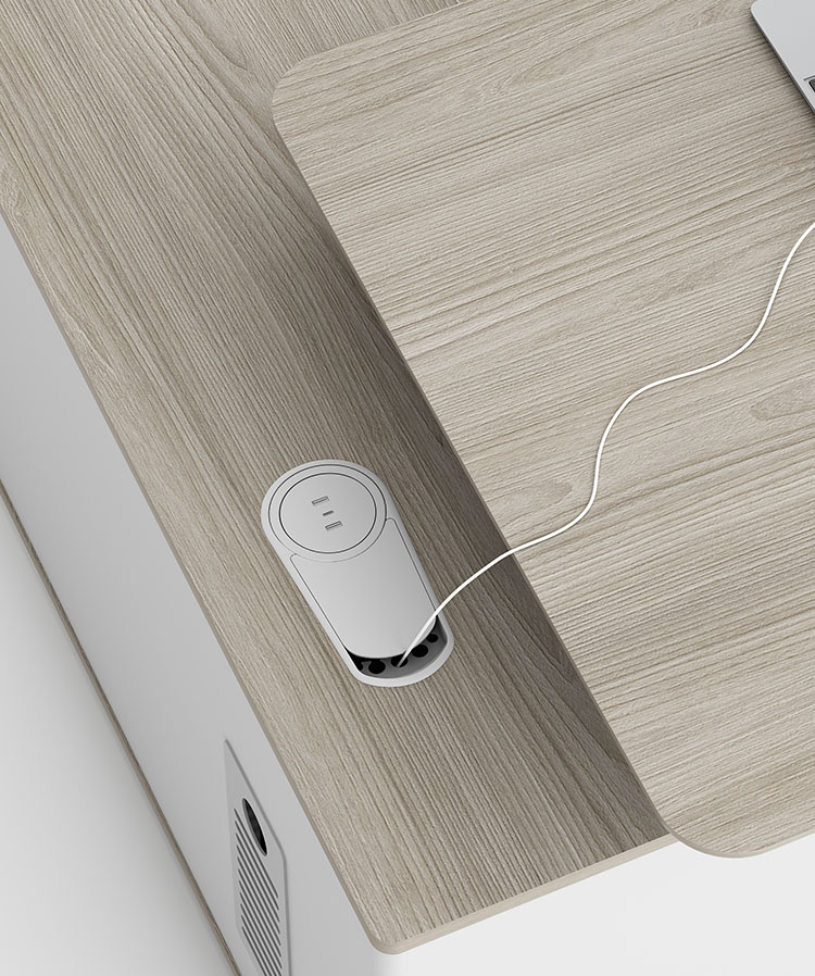台面搭配双翻线盒,操作简便。The desktop is equipped with a double flip wire box for easy operation.