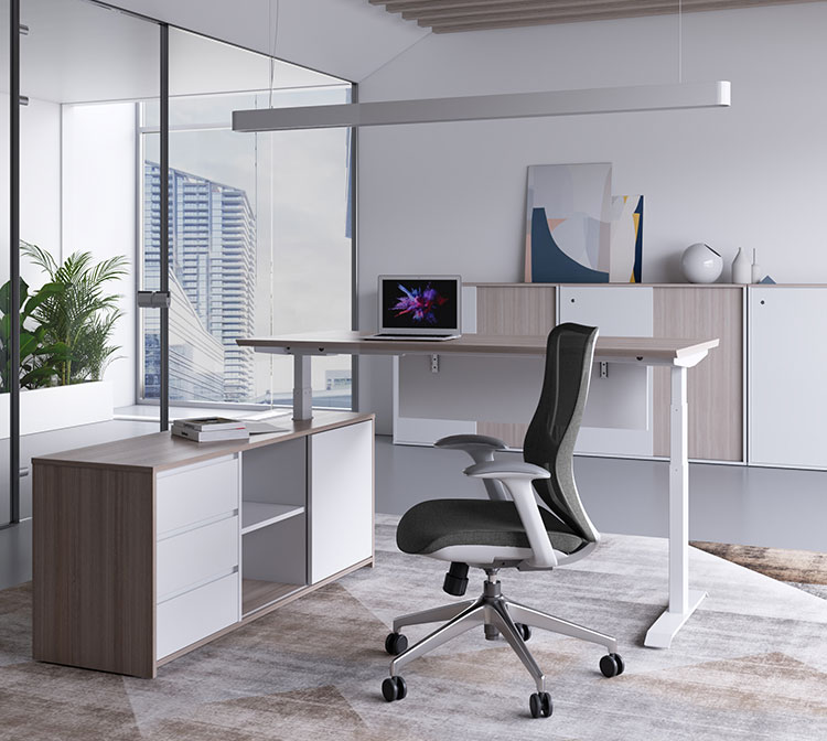 满足传统办公需求的同时增加了桌面高度调节功能,改变办公形态,改善办公氛围