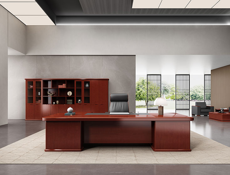 宽大厚重的柱式脚型源于中国传统柱式结构,规矩方正的台面设计凸显着四平八稳的东方处世哲学