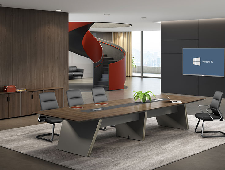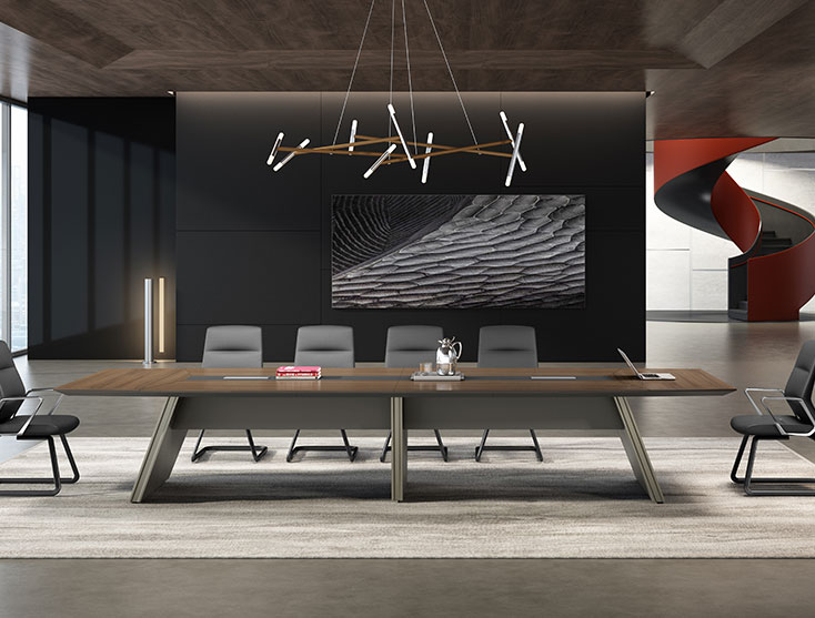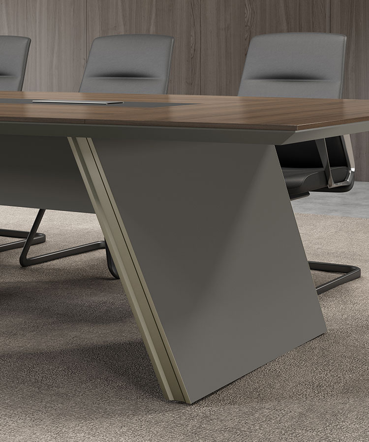 会议桌:3500*1370*750 / 4200*1500*750 - 颜色 CF08-LS直纹棕核桃木进口拉丝饰面 / CF17-LS流星灰拉丝饰面