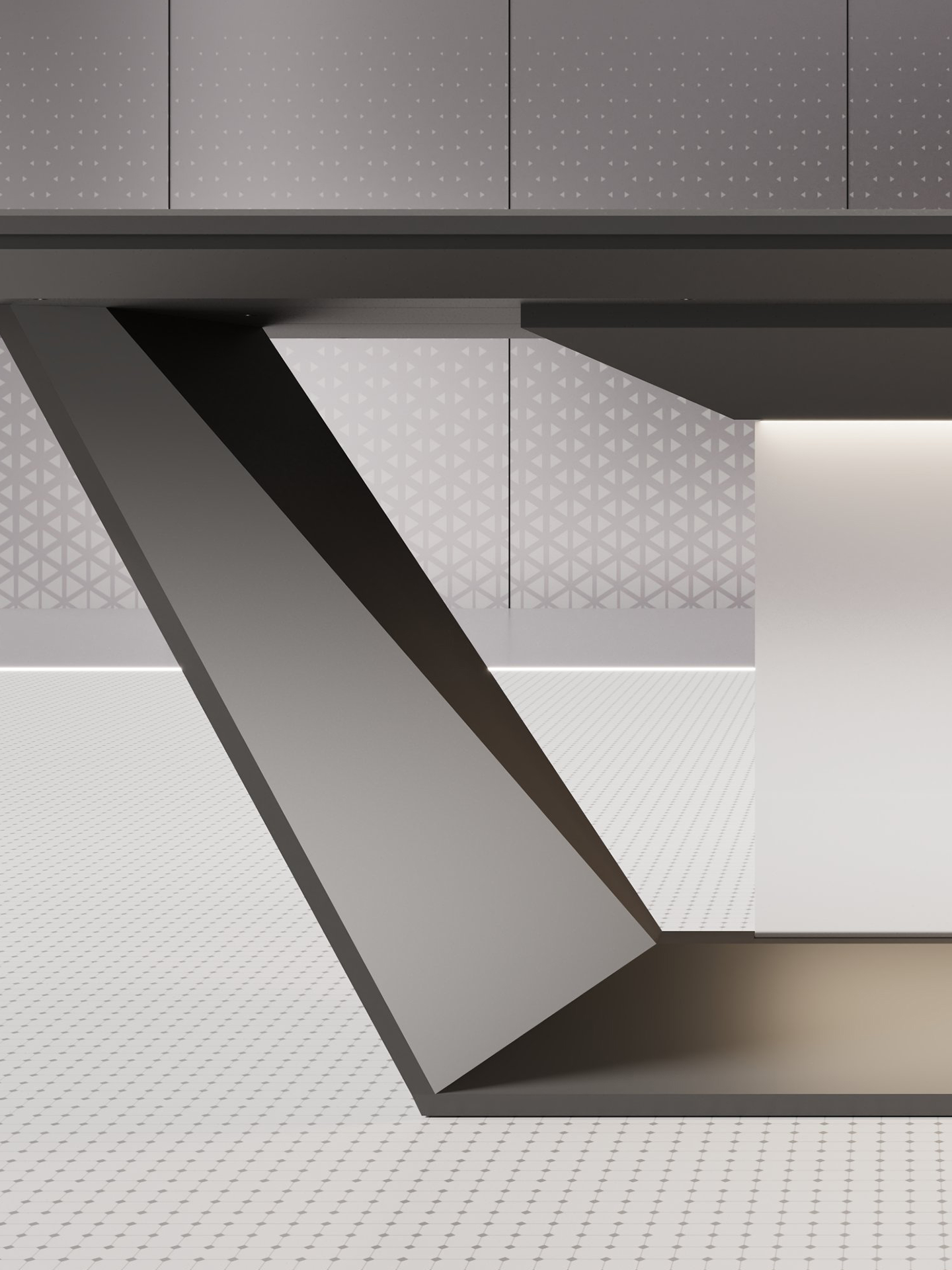 博奥是一款极具建筑感的硬朗风格班台,通过对大量现代几何建筑硬朗线条的提炼概括以及融入一些未来主义概念设计的元素 茄子视频你懂的,表达了科尔卡诺对未来主义班台的设想,像世人诠释着几何,极简,未来至上的理念。