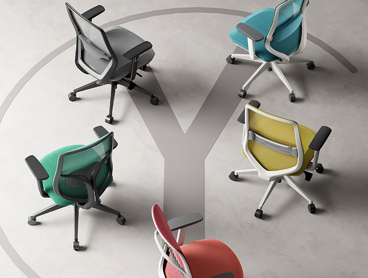 通用背系列,舒适与美感相得益彰,轻快明亮的设计完美契合年轻人的要求,随心所欲的升降,倾仰功能充分体现人体工学原理,满足不同工作形态的办公需求
